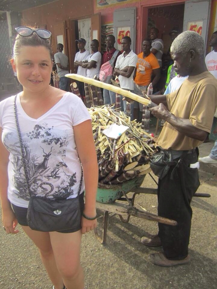 En effet, lors de mes vacances au Cap Haïtien, ce concert clôturait une autre mémorable journée à l’haïtienne, où j’avais entre autres magasiné pèse-bananes & épices au Marché de fer et erré dans les rues de la ville sous la pluie, en y croisant une dame qui vendait du Royal, délicieux mamba étalé sur un morceau de kassav que j’avais savouré avec une bonne prestige byen glace tout en me baladant à la place d’artisanat tout près de Feu Vert, et suivi de bâtons de cannes à sucre fraîchement coupés que j’avais engloutis comme dessert en regardant un match de foot local, sous le regard amusé des partisans!